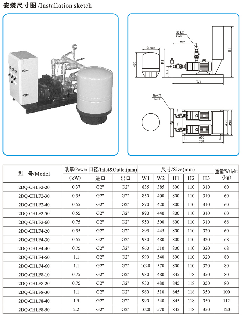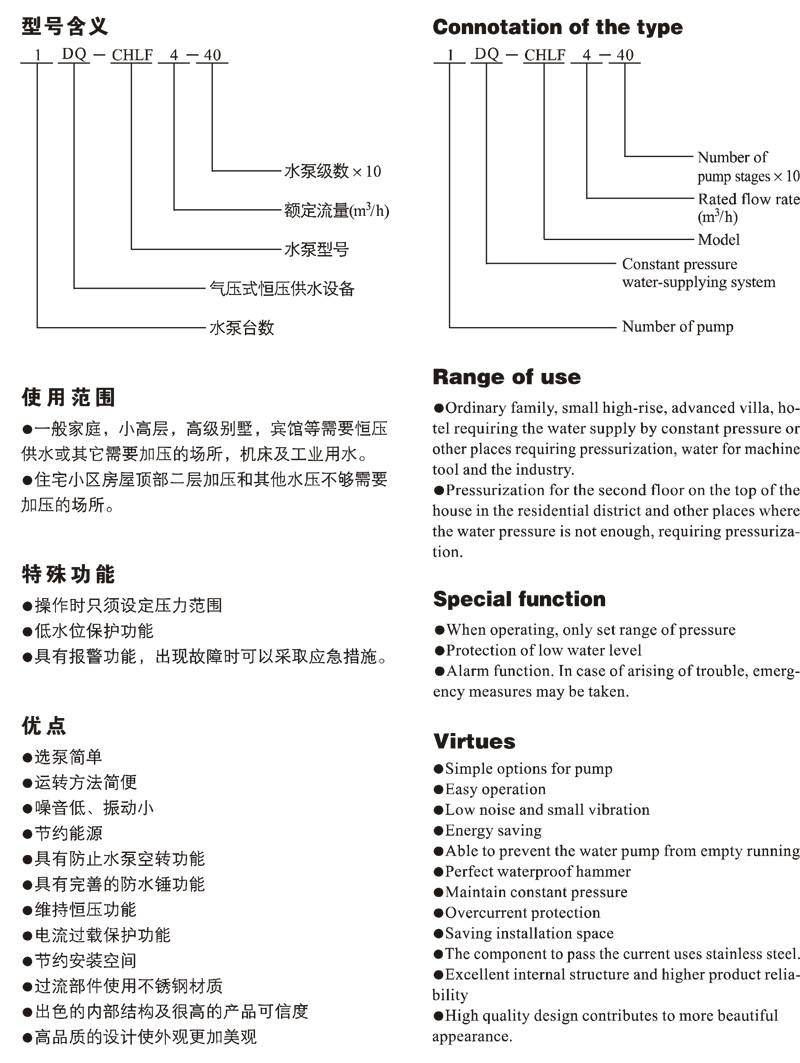 成套供水设备,由性能PID变频控制器、泵组、管路附件及压力罐组成。