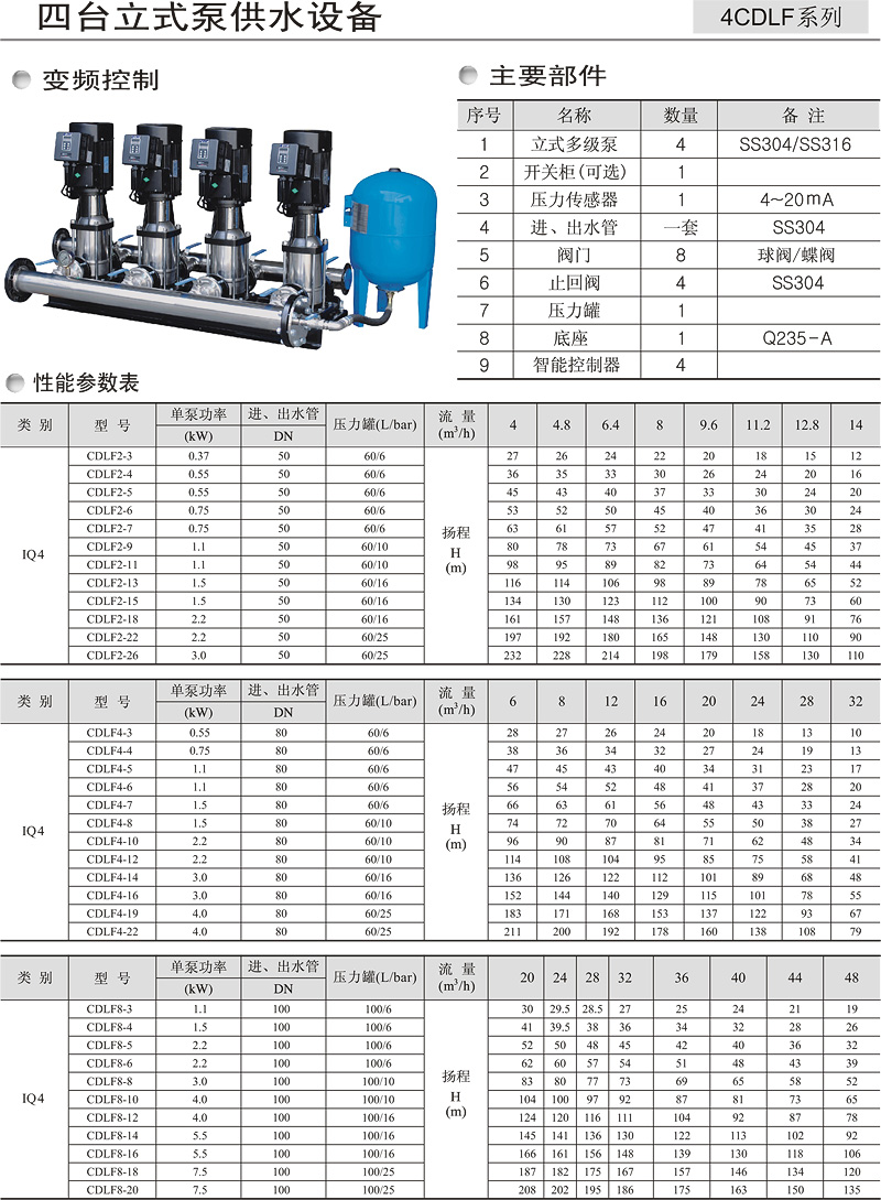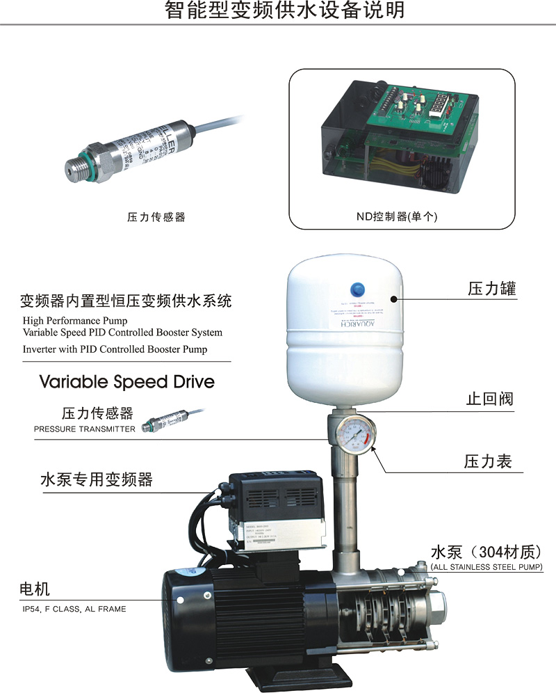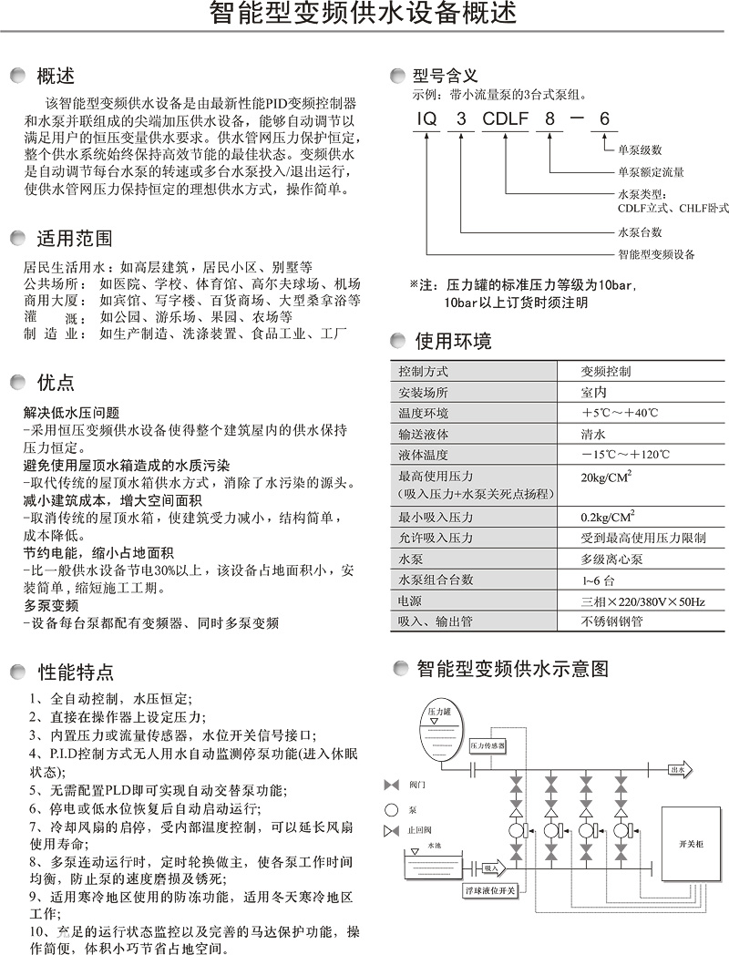 成套供水设备,由性能PID变频控制器、泵组、管路附件及压力罐组成。